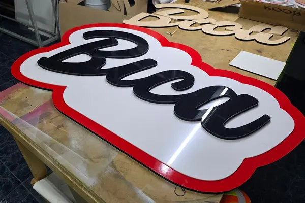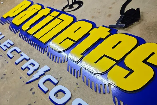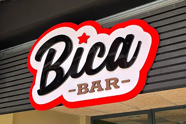Un rótulo 3D multicapa combina varias capas de materiales como madera o metacrilato para crear volumen, color y profundidad. Una opción llamativa y duradera para destacar tu marca.
